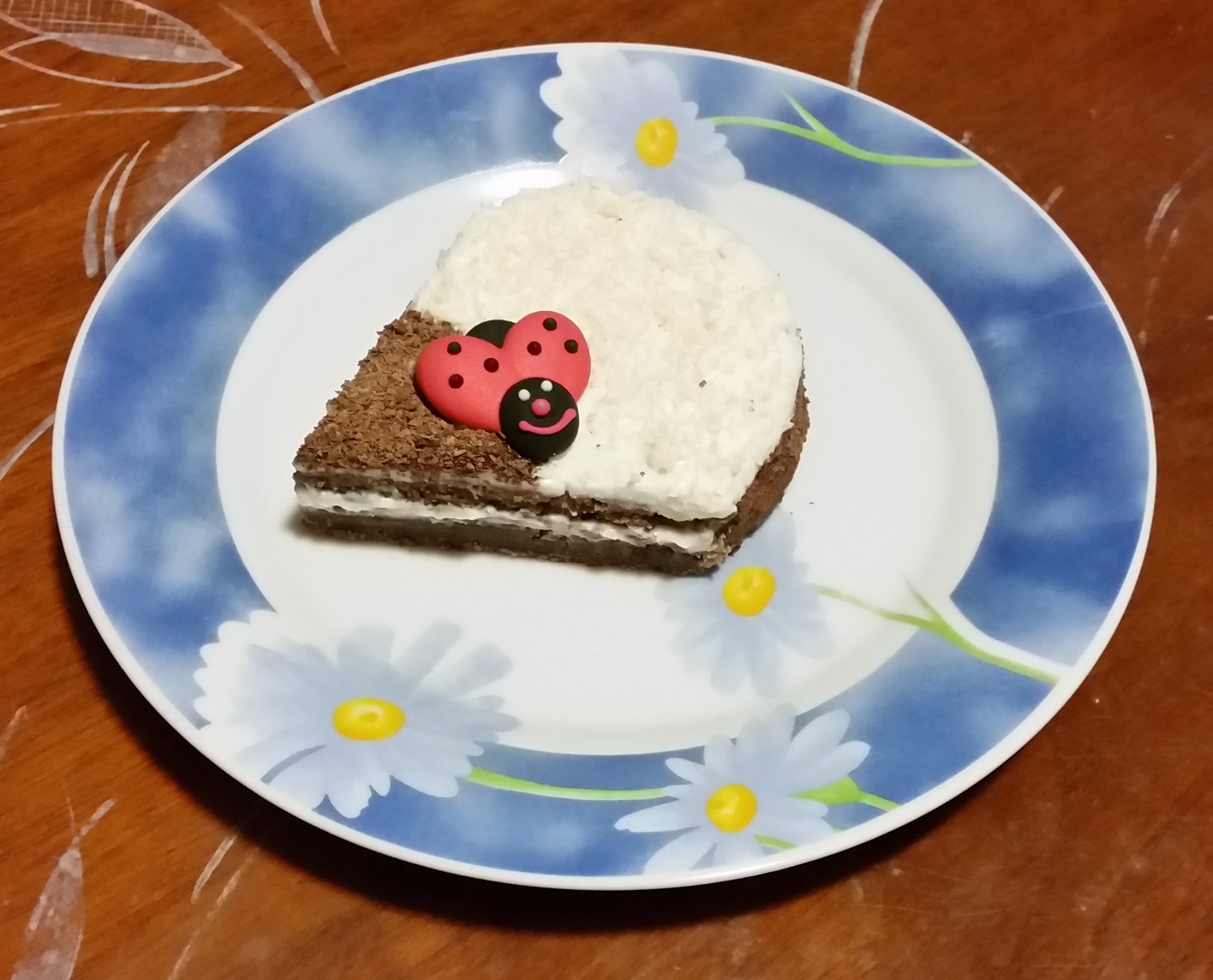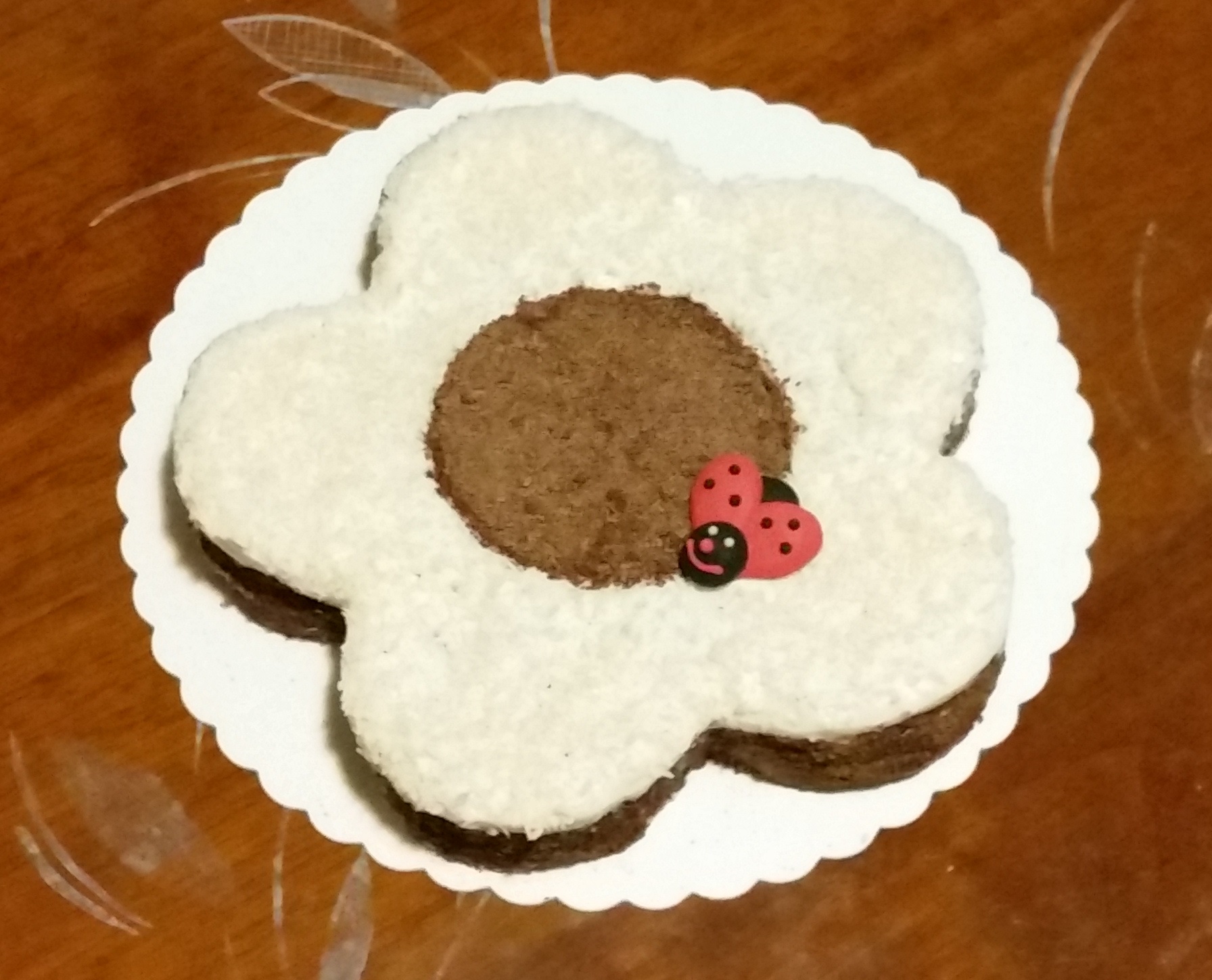 Ho messo la torta a riposare in frigo per almeno un’ora, poi l’ho completata aggiungendo la coccinella.