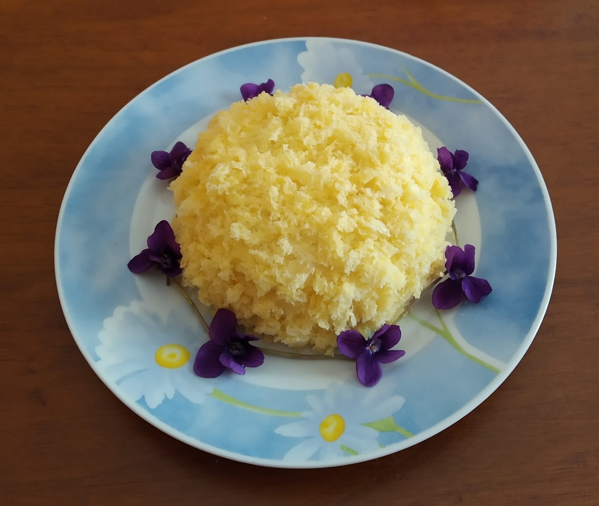 La torta mimosa è un dolce piuttosto semplice il cui nome deriva dal suo aspetto, simile appunto ai fiori della mimosa.